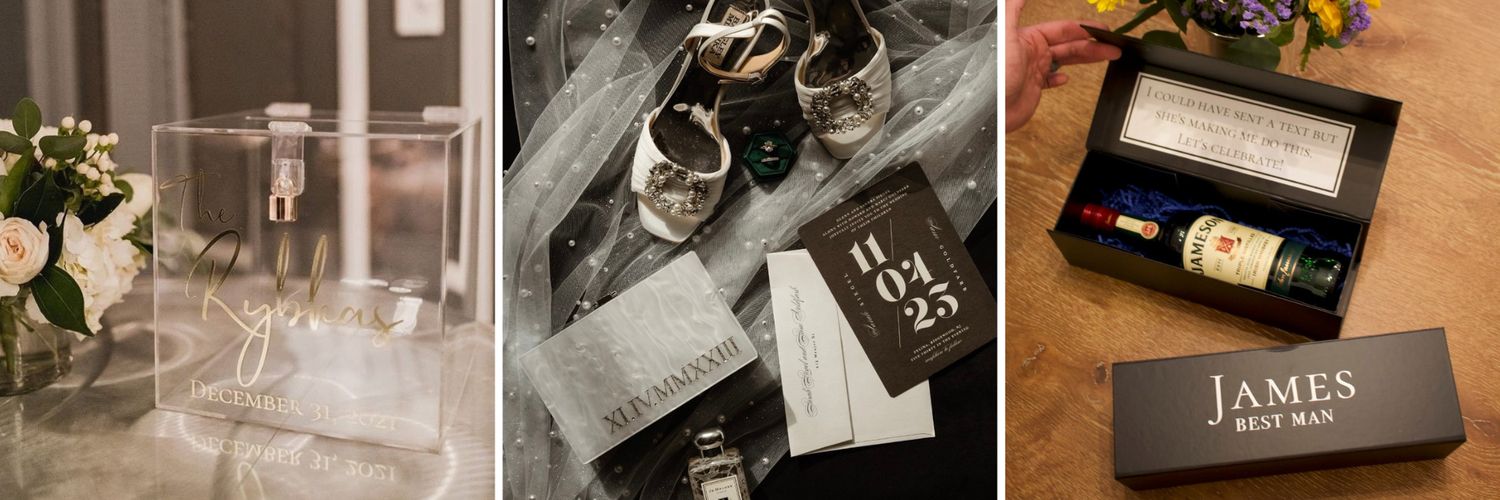 The Quinn and Company is a personalized wedding decor and gift boutique specializing in curated gift card boxes, custom wedding signs, personalized clutches, laser cut + engraved products. Our pieces are for making the moments that mean most to you even more memorable. Whether your best friend just got engaged or you want to treat yourself to something special, we have something just for you! We recently became a husand and wife team.