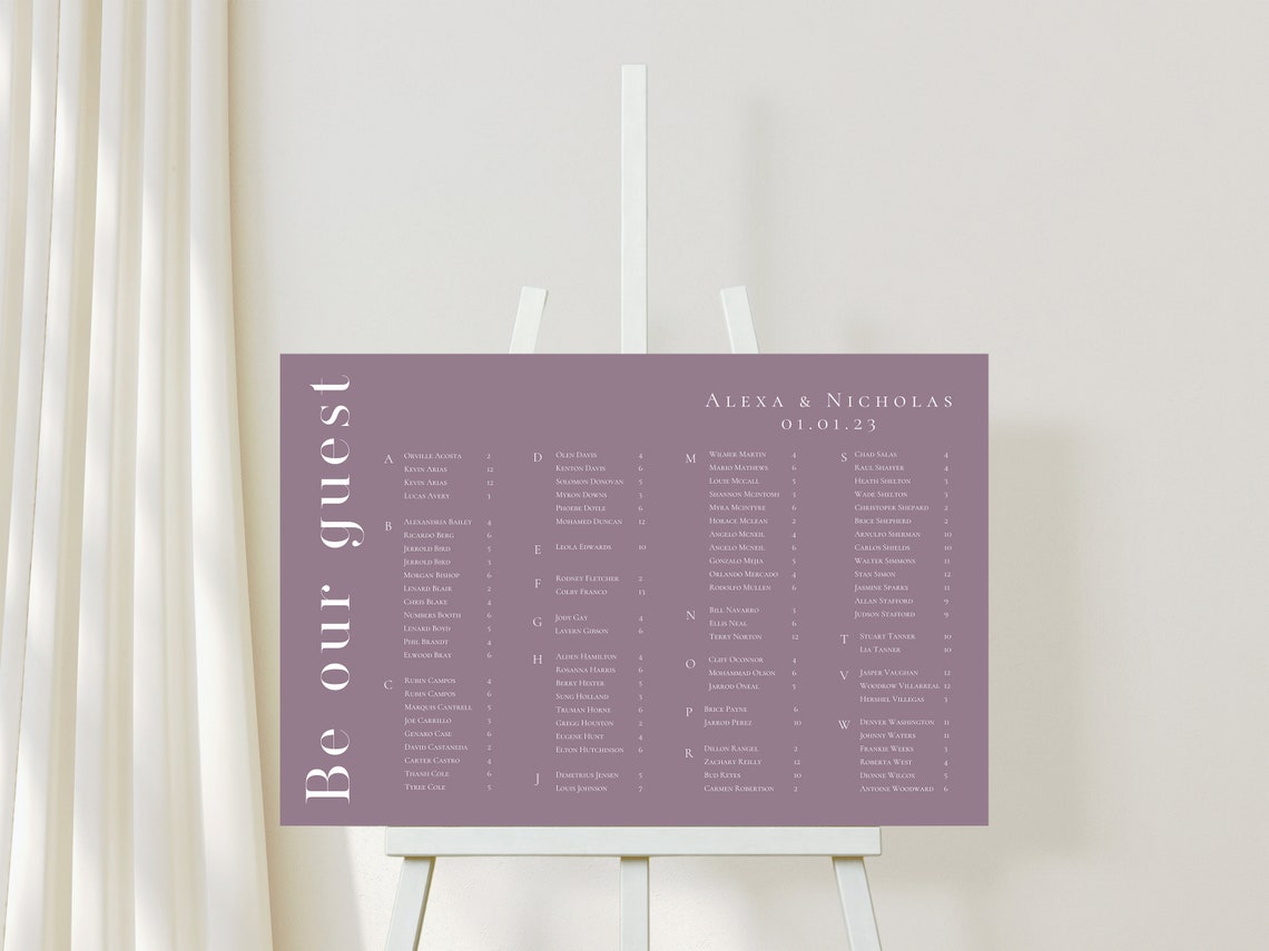 This minimalistic wedding seating chart template features modern fonts and simple designs that pair beautifully with many color palettes. You can easily edit the fonts and colors to better match your event. All you need is a FREE Canva account to edit and print from home. No software or font downloading necessary.