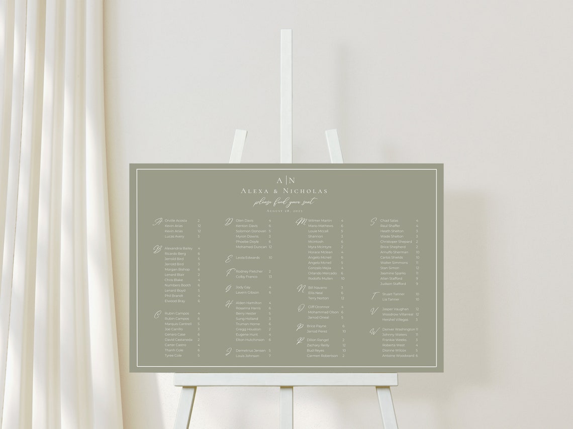 This minimalistic wedding seating chart template features modern fonts and simple designs that pair beautifully with many color palettes. You can easily edit the fonts and colors to better match your event. All you need is a FREE Canva account to edit and print from home. No software or font downloading necessary.