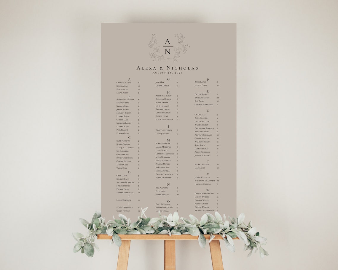 This minimalistic wedding seating chart template features modern fonts and simple designs that pair beautifully with many color palettes. You can easily edit the fonts and colors to better match your event. All you need is a FREE Canva account to edit and print from home. No software or font downloading necessary.