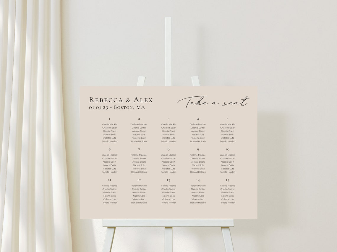 Custom Seating Chart Template Download | Modern Design | Wedding Calligraphy INSTANT Download | Minimalist Seating Printable Editable Sign