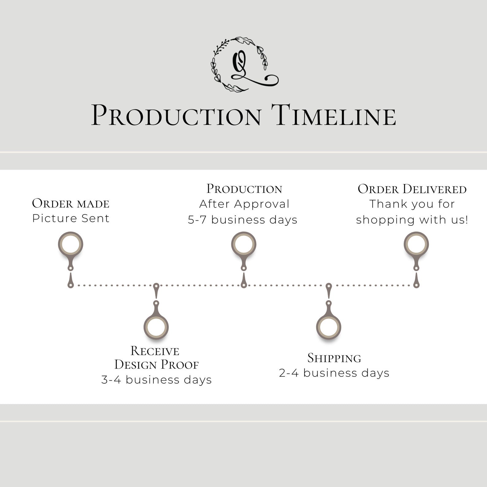 Please allow up to 2 weeks for production and shipping turnaround. If you need your items sooner than this, please message us and we’ll let you know if rush shipping is an option based on your desired delivery date.