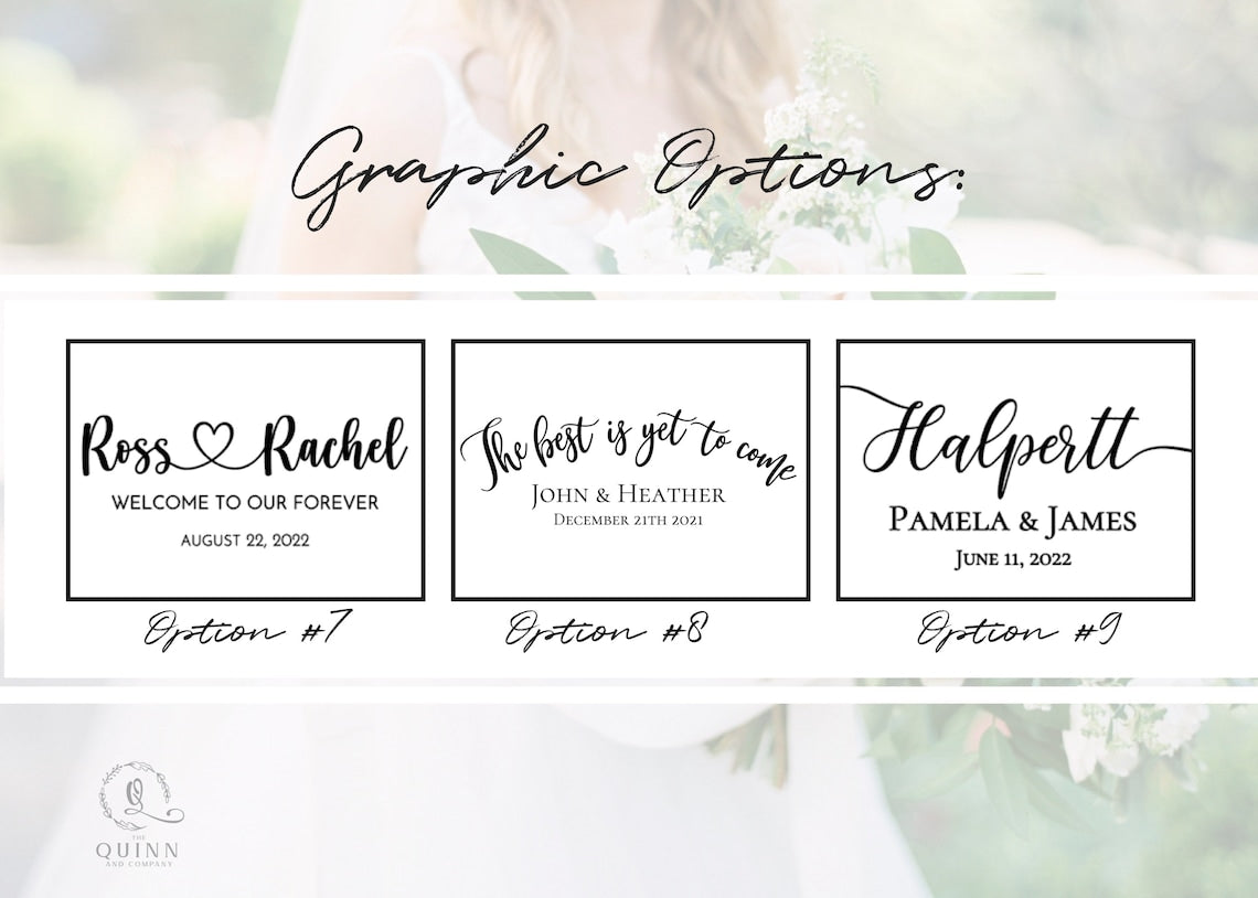 3.Enter necessary information based on desired design - names, date, etc. in the "Note to seller" text box at checkout.