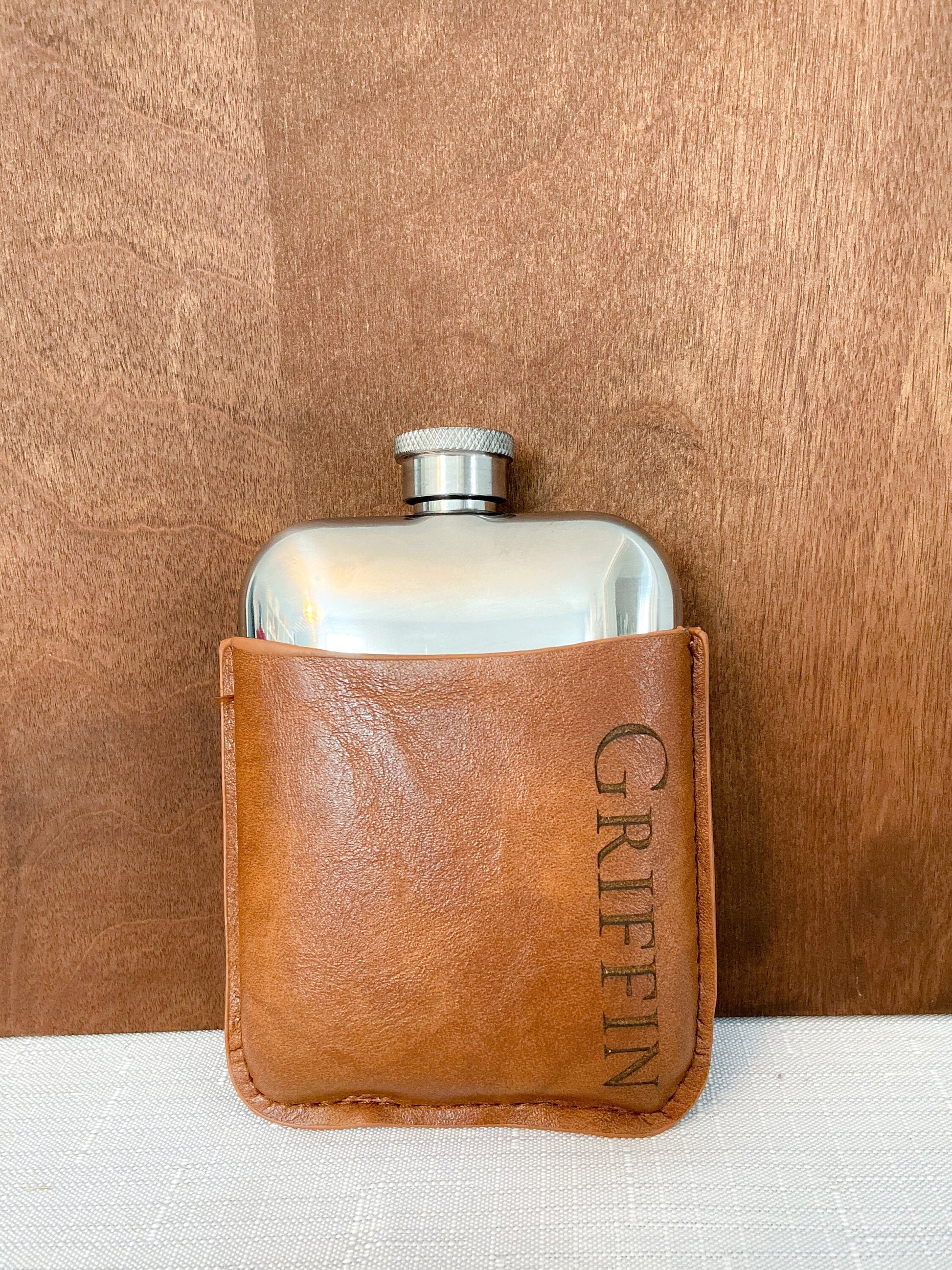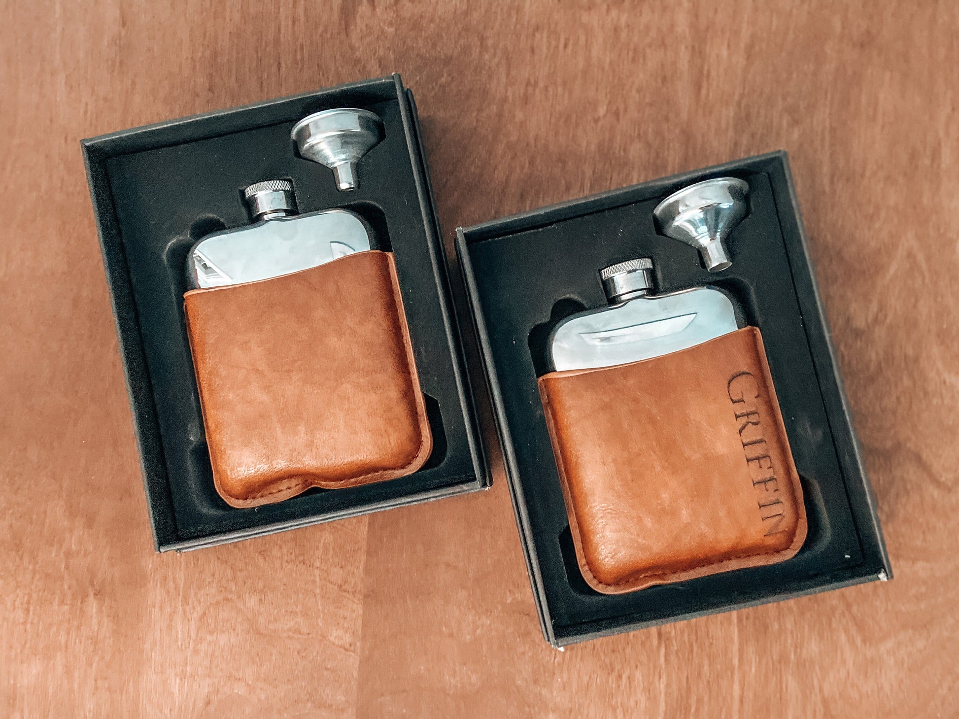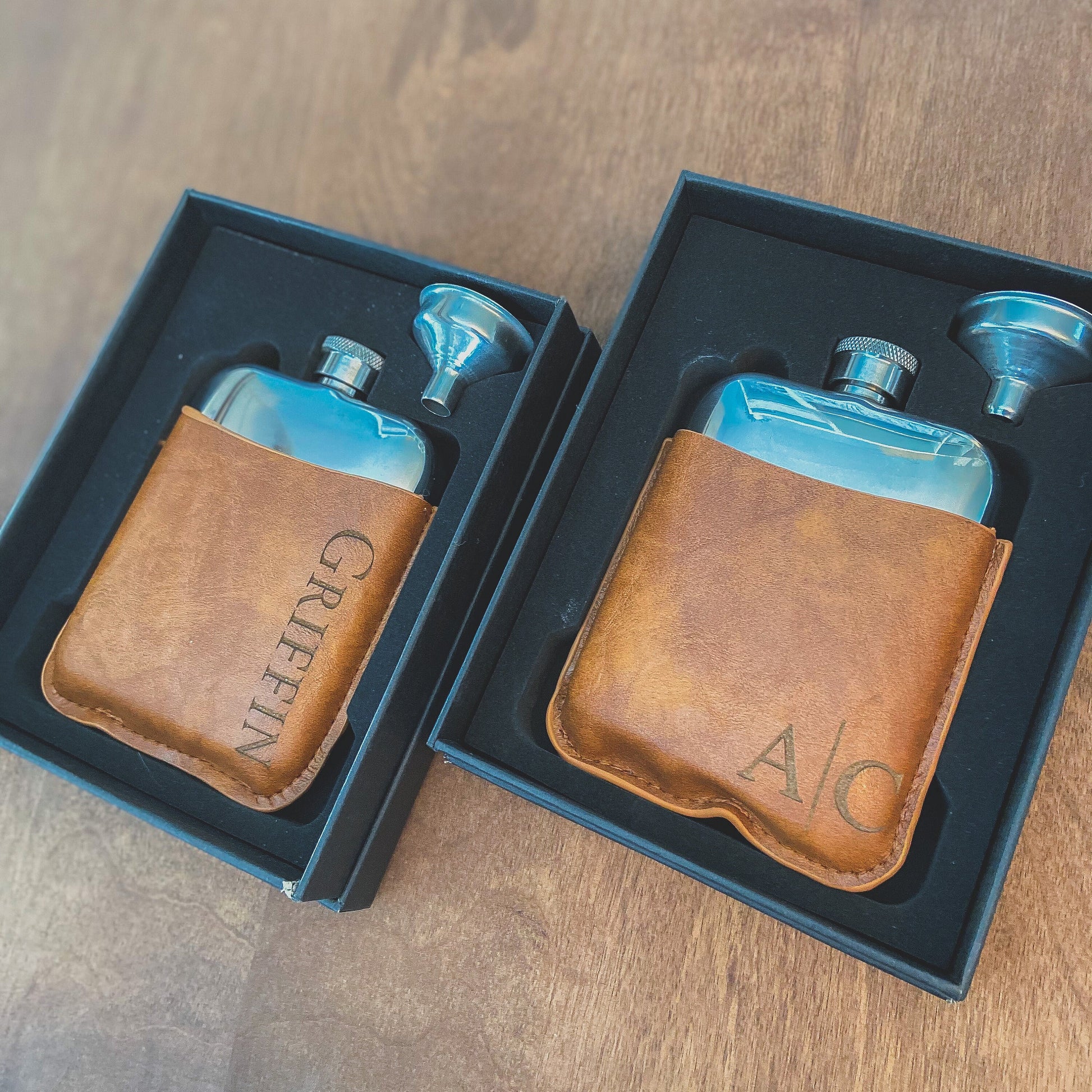 Groomsmen Flask Set, Engraved Flask, Monogrammed Flask, Leather Hip Flask, Flask For Groomsmen, Wedding, Engraved Dad Gift